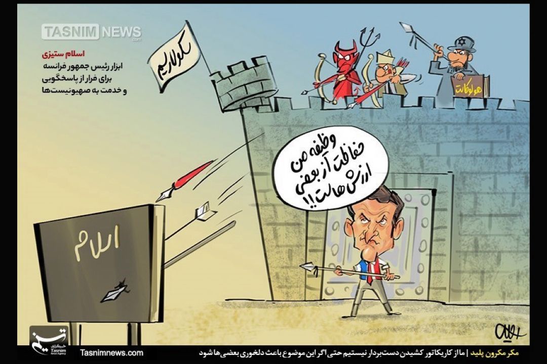 برخی هنرمندان كارتونیست كشورمان در واكنش به حمایت رئیسجمهور فرانسه از كاریكاتورهای موهن به پیامبر اعظم(ص)، كاریكاتورهایی منتشر و تأكید كردهاند به ازای هر طرح توهینآمیز، آنها 10 طرح تولید میكنند.
